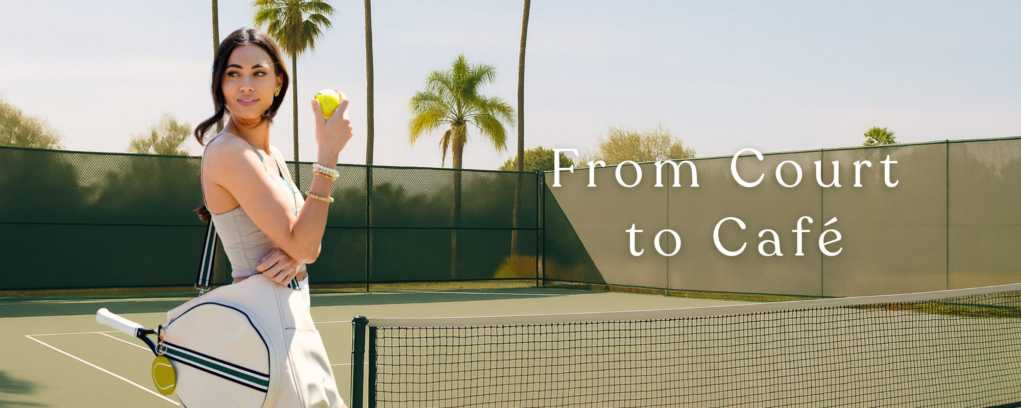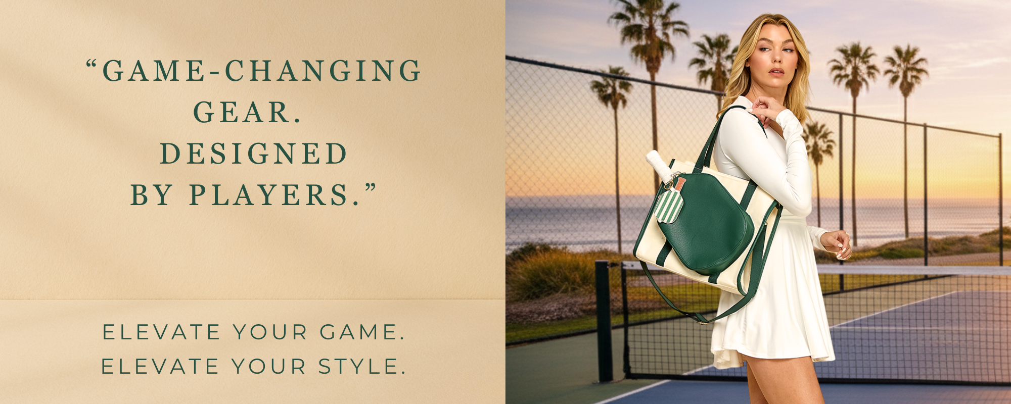 Tennis Convertible Backpack - Beige/Gold Green