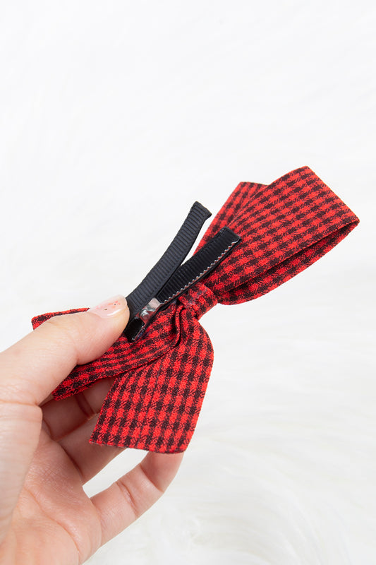 Cute Bow Hair Clip Pin for Women and Girls - Fabric Gingham Red