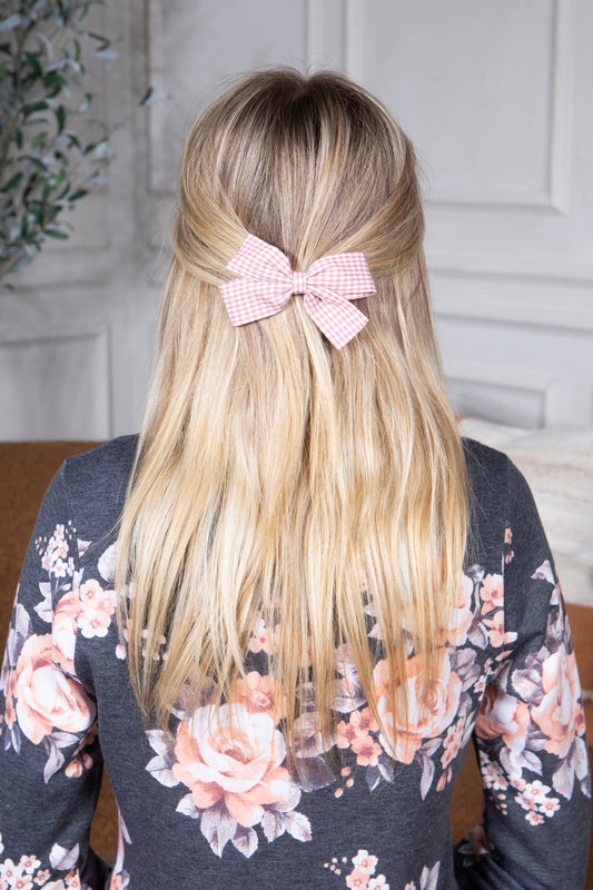 Cute Bow Hair Clip Pin for Women and Girls - Fabric Gingham Pink