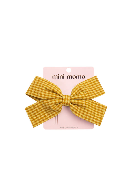 Cute Bow Hair Clip Pin for Women and Girls - Fabric Gingham Mustard