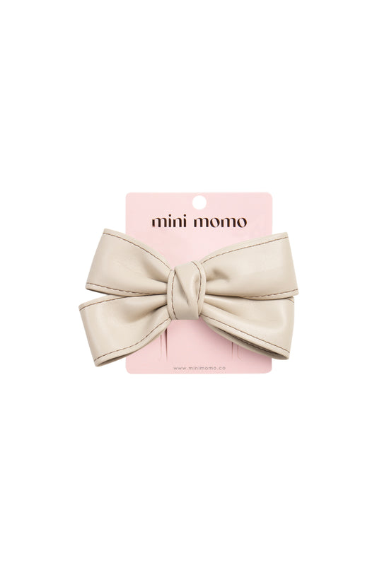 Cute Bow Hair Clip Pin for Women and Girls - Faux Leather Beige