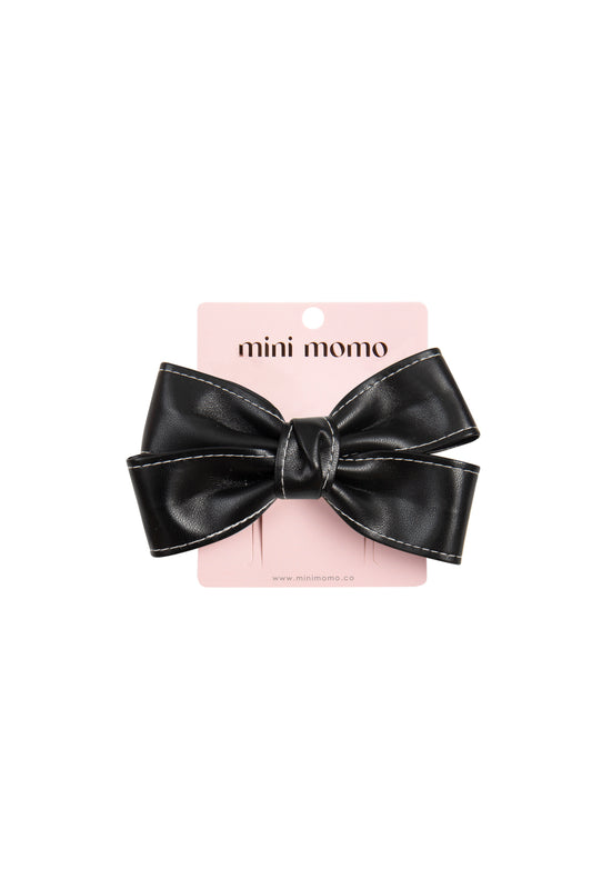 Cute Bow Hair Clip Pin for Women and Girls - Faux Leather Black