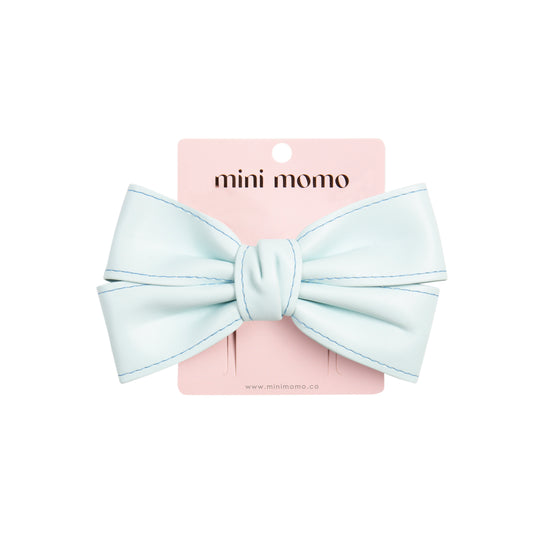 Cute Bow Hair Clip Pin for Women and Girls - Faux Leather Blue