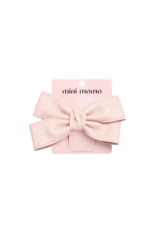Cute Bow Hair Clip Pin for Women and Girls - Faux Leather Pink
