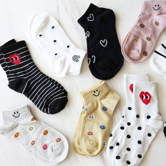 Cute Smiley Face Colorful Women's Ankle Socks Set