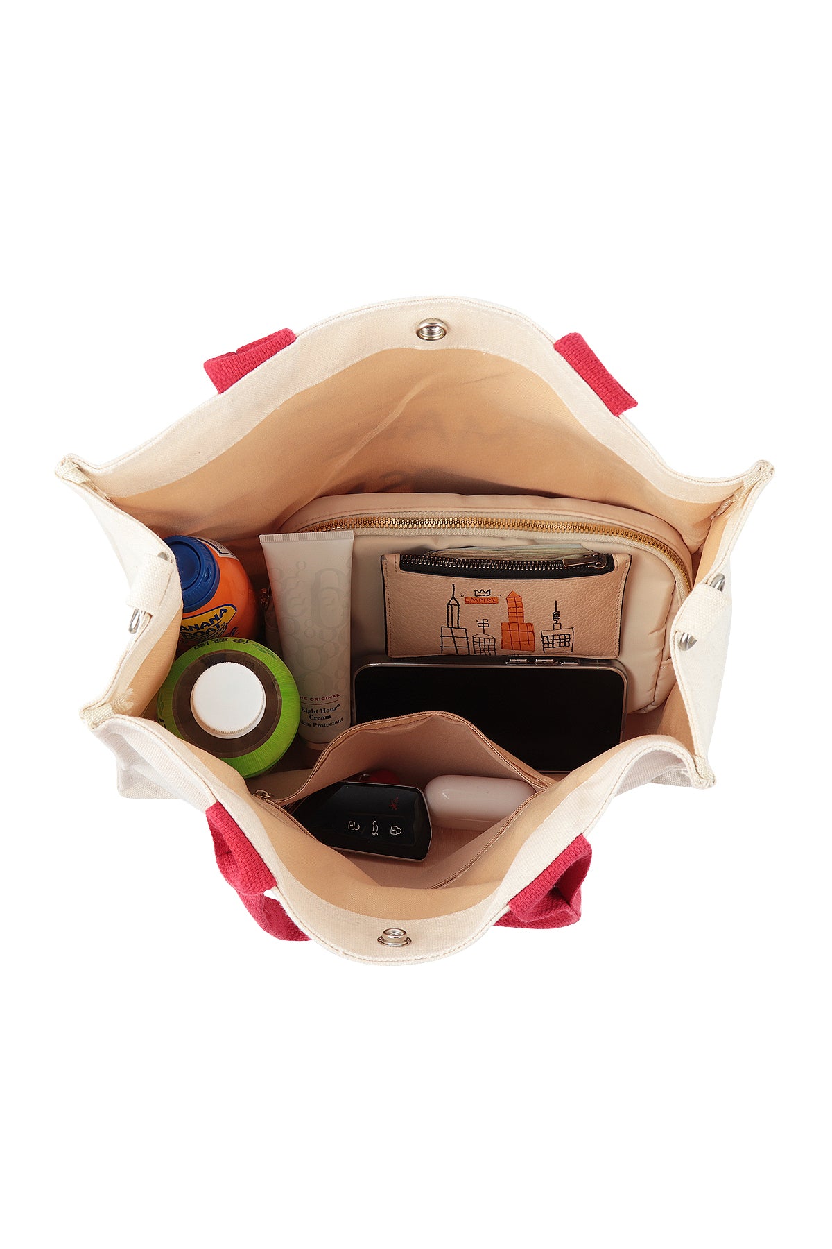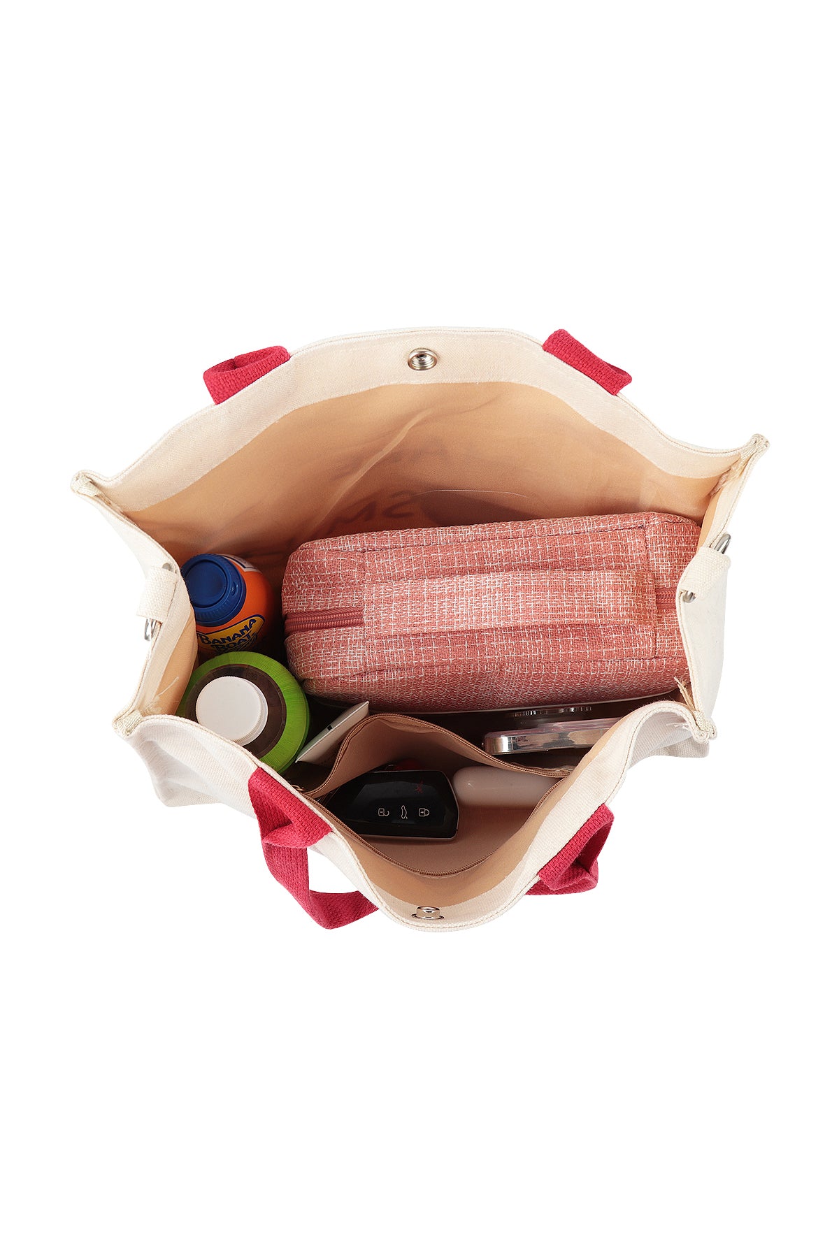 Smile Canvas Tote Bag Shoulder Crossbody Strap Fabric Shopper Purse Handbag - Ivory
