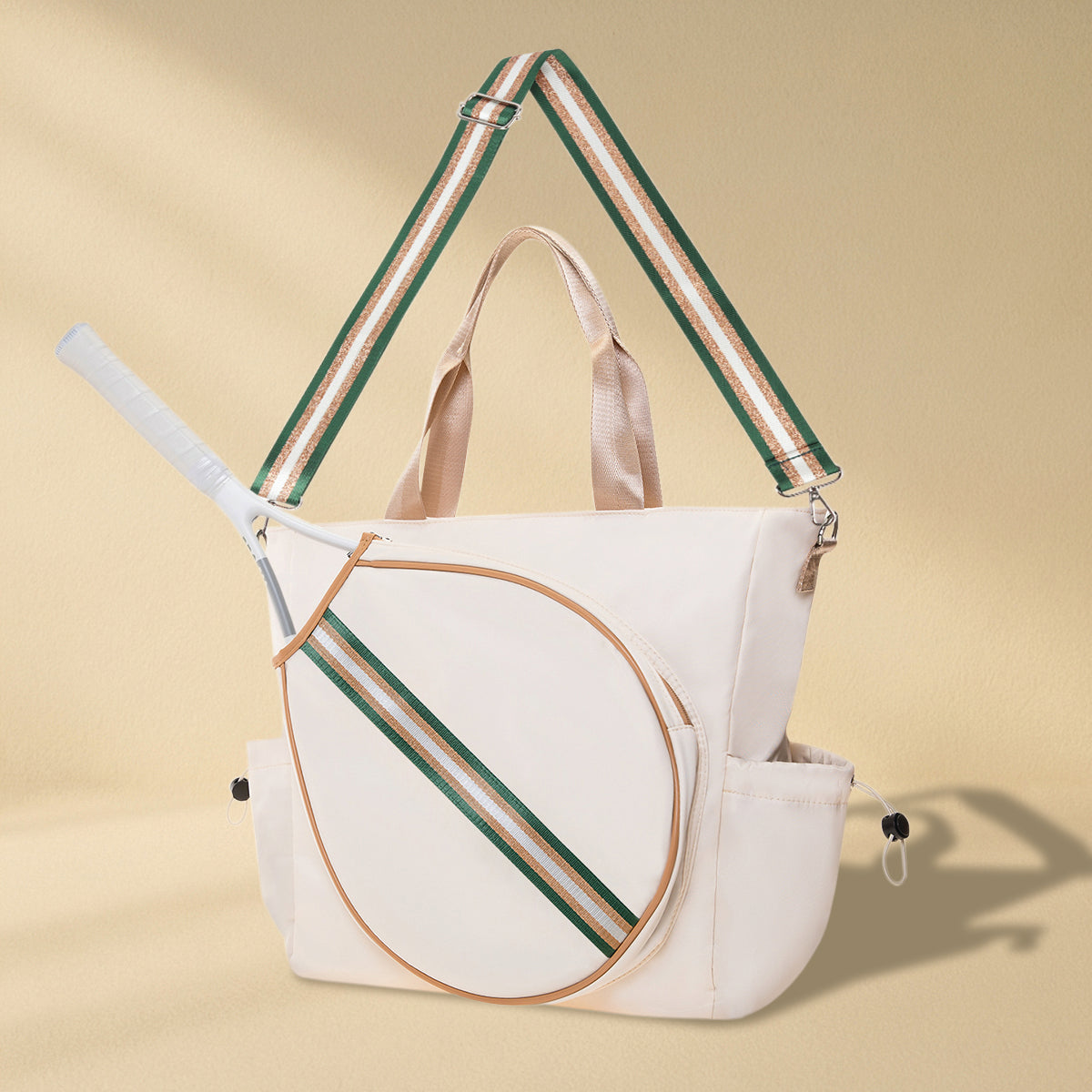 PRODUCT DETAILS: Upgrade your game with our stylish and functional Tennis Tote Bag. This versatile bag combines practicality with fashion, featuring a detachable, adjustable shoulder strap, allowing you to wear it as a tote, shoulder bag, or crossbody for multiple styling options.